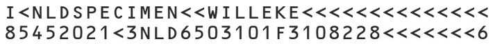 In some more rare cases, an ID card can have a MRZ that conforms to the TD2 format - which consists of 2 lines, 36 characters each. Below is a sample of a TD2 MRZ from a sample idea to give you an idea of what it looks like:
