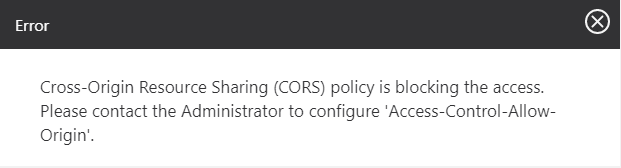 When a request comes from a different origin, a CORS error message will be displayed, both in a pop-up and in the console.