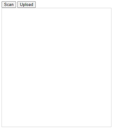 Open HelloWorld.html in your browser, for example by selecting the HelloWorld.html file to open with your browser. On the web page, you should see a scan button, an upload button, and an empty preview box: