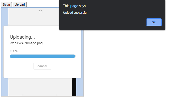 Once an image has been acquired, click the upload button.You should receive the successful upload message upon completion: